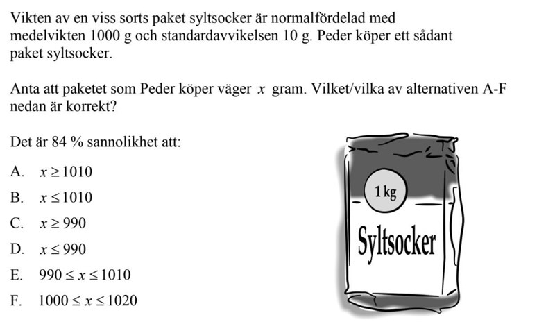 Inte hela standardavvikelsen! Vilka delar av kurvan kan summeras till 84%?