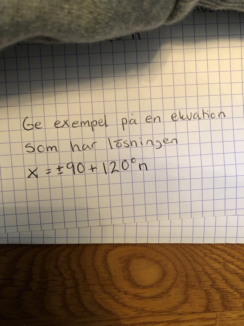 Börja med att rita in alla lösningar i enhetscirkeln. I bästa fall kan man få någon idé då. Lägg in bilden här. Du kan också fundera på vilken period det handlar om, alltså om det är typ sin(2x) eller cos(0,5x).