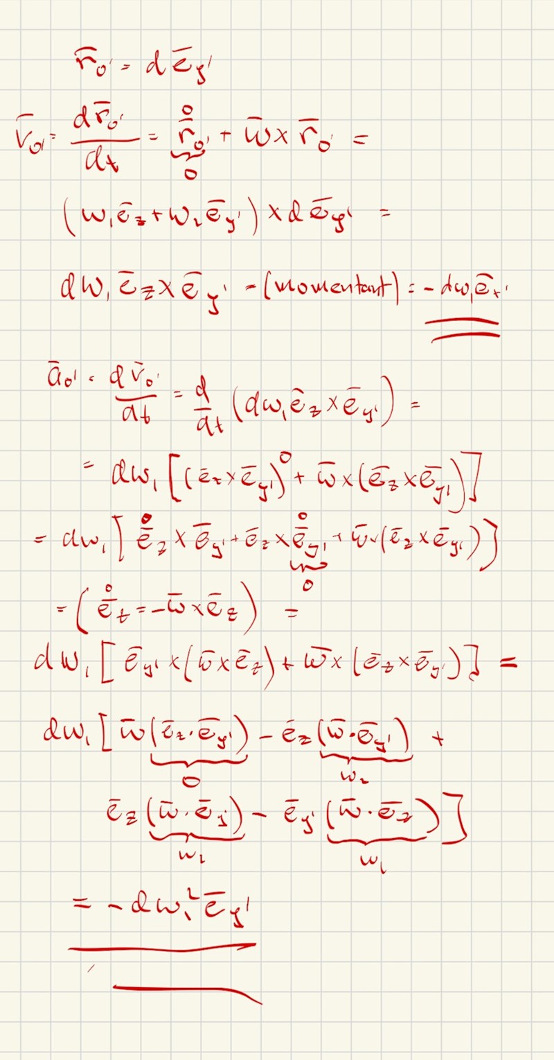 aO'=dvO'dt=vO'+ω×vO'=0+ω1ez+ω2ey'×-dω1ex'=-dω12ey'+dω1ω2ez'