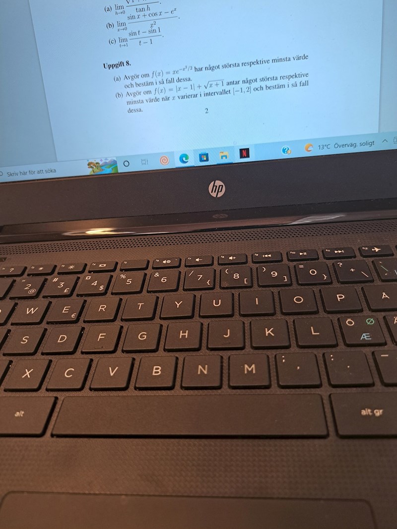 I uppgift 8a är definitionsmängden definierad för hela R axeln och när man deriverar den får man en kritisk punkt ,så jag antar att beroende om det är max eller min i den punkten så leder det till att största o minsta värde kan bestämmas?