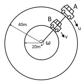 Jämför bilarna A och B. De roterar runt centrum lika många gånger per minut.