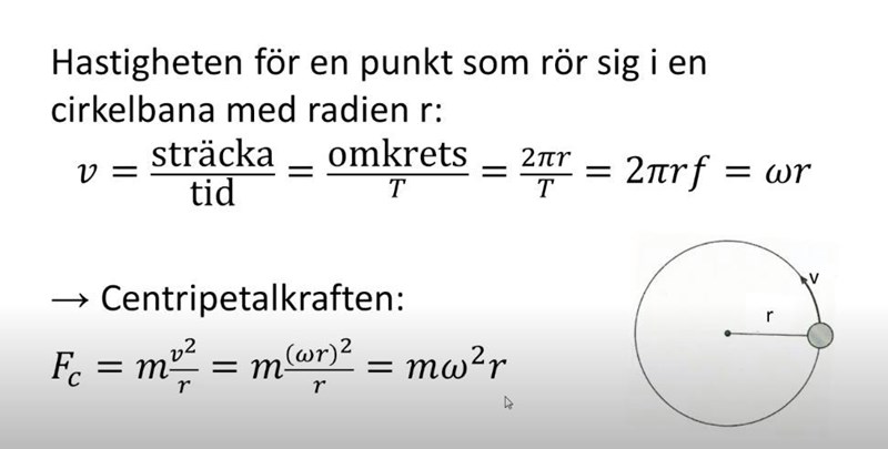 Men jag förstår inte är det inte vinkelhastighetsformeln man ska räkna här? jag hittar inte någon formel som är v=r*w på min formelblad?