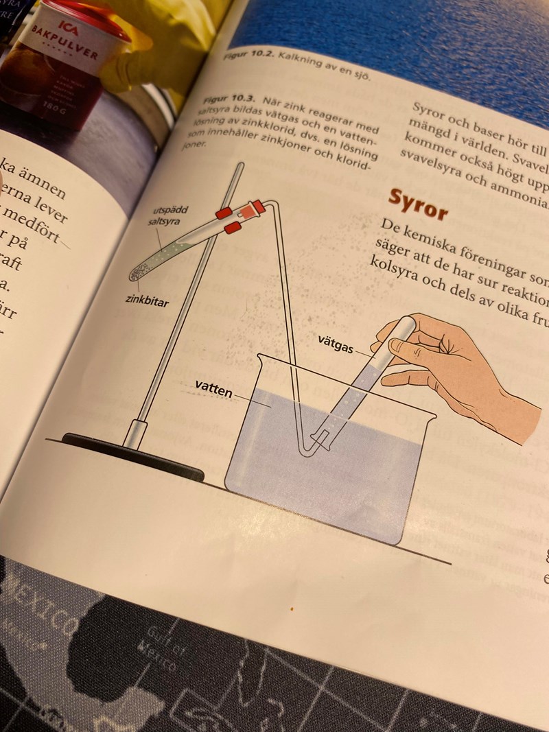 Man fyller provröret med vatten, vänder på det och sänker ner det under vattenytan. Då kommer vattnet att stanna i röret. När gasen sedan bubblar in i röret trycker den undan vattnet. På så sätt får man enbart vätgas i röret. Hade man gjort det där i luften hade man haft både luft och vätgas i röret och man skulle inte kunna se när röret var fullt med vätgas.