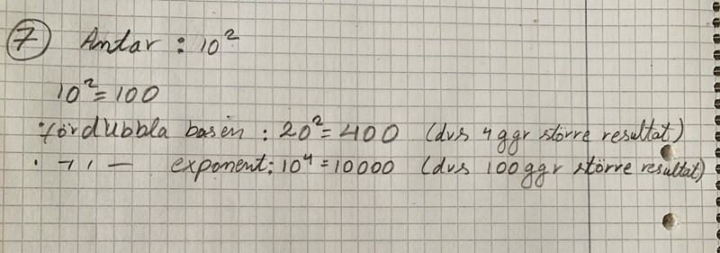 Bra. Kan du förklara fenomenet med hjälp av potenslagarna?