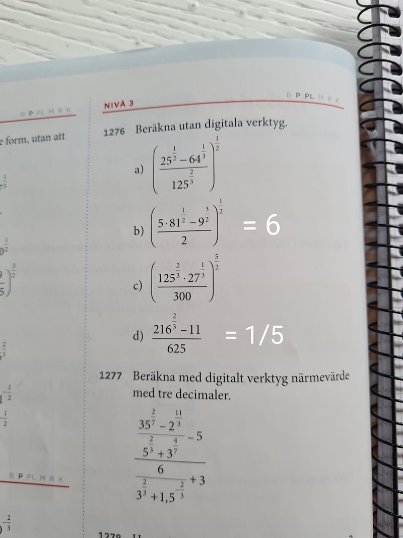 Hej, i facit står lösningen till fråga b) 6 och d) 1/5