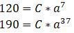 Jag tycker det vore enklare att ta fram a först genom att dela den andra ekvationen med den första ekvationen. Då kommer konstanten C att ta ut varandra, och du har ett tal som är lika med a30. Då är det ganska lätt att beräkna a.