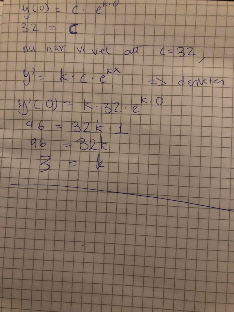 Bestäm C och k om vi vet att y(0)= 32 och att y′(0) = 96