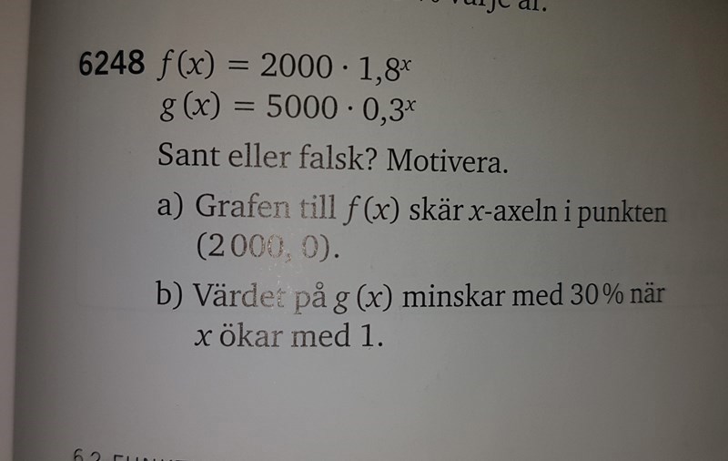 b) Även här kan du göra en insättning och helt enkelt testa saken. Sätt in t.ex. x=0 och x=1. Jämför sedan de två y-värdena. Hur stor är den procentuella minskningen mellan dem? Är det 30%?