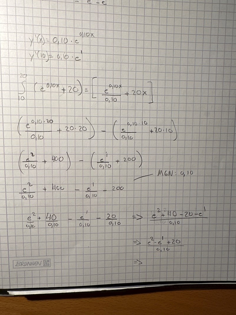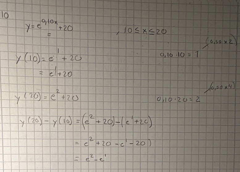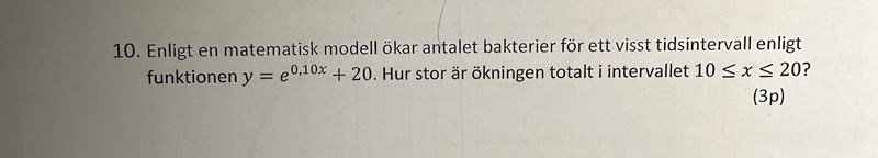 Så ökningen av bakterier under intervallet 10<=x<=20 är e2-e1 ?