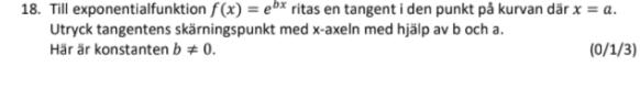 Sedan har jag tänkt att b*e ^a*b även är tangents k-värde, vilket ger mig en "påbörjad" tangent: