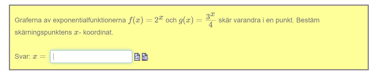 Ett är att skriva om till och sedan logaritmera bägge led för att sedan lösa ut .