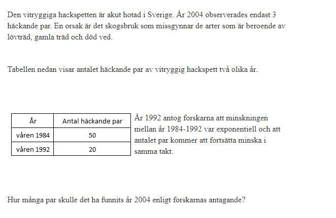 Låt beteckna antalet häckande par av vitryggig hackspett som finns i Sverige år efter det att man började observationerna, som var år 1984.