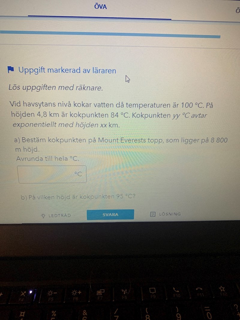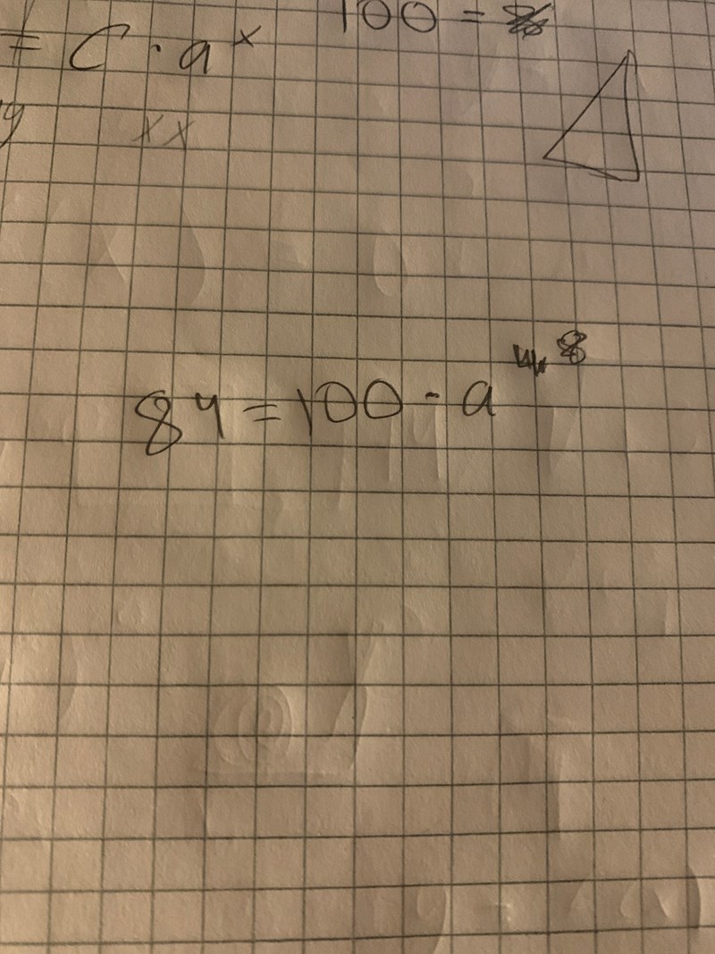 Jag vet inte riktigt huset jag ska göra här. Jag vet att jag ska använda mig av formeln y=c•a^x men vet inte vad jag ska sätta in i dom. ska jag sätta 8800 m i exponenten x??