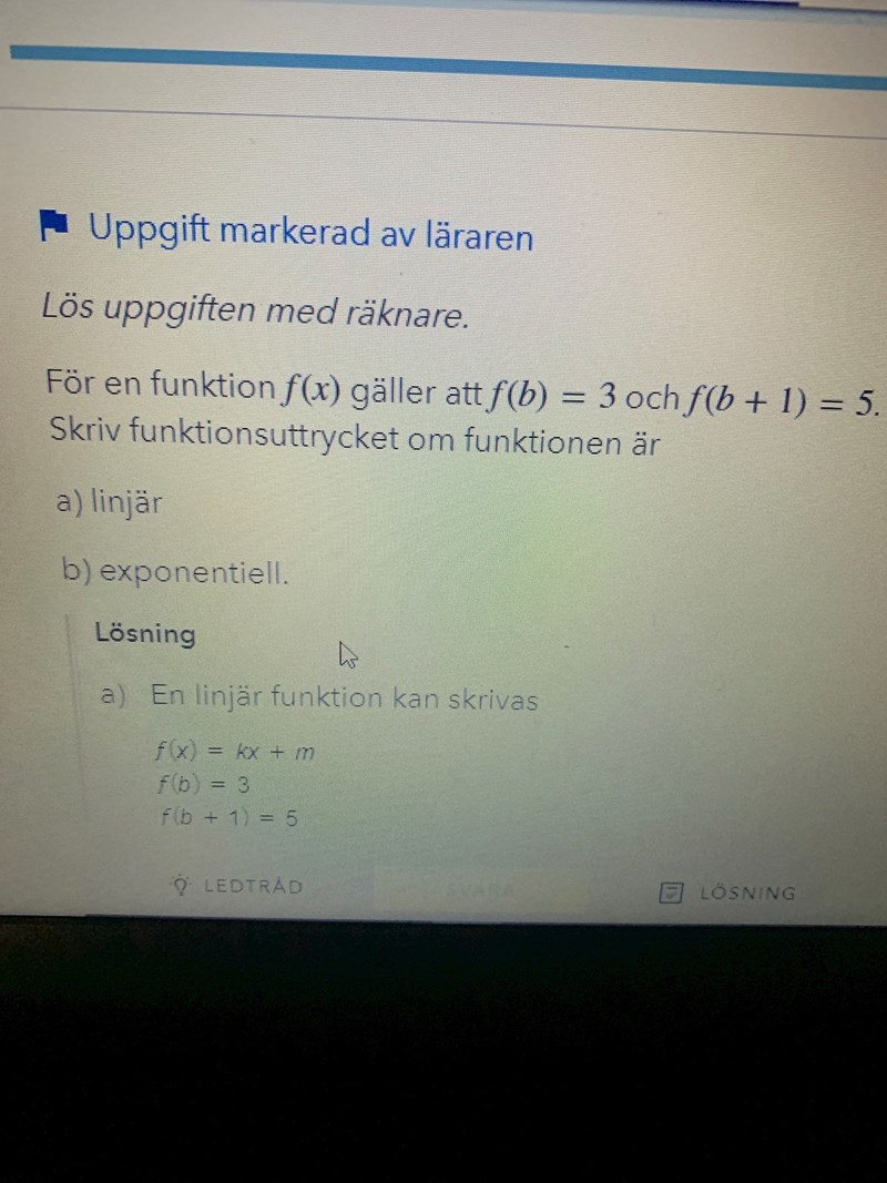 Skulle gärna behöva hjälp med denna uppgiften. Jag har löst a, vilket blir y=2x+3-2b