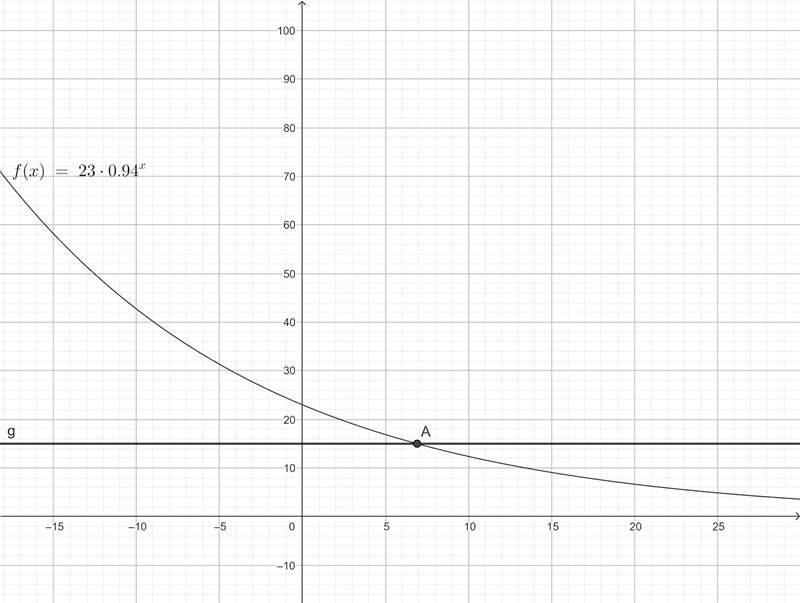 Skriv in f(x)=23*0.94^x