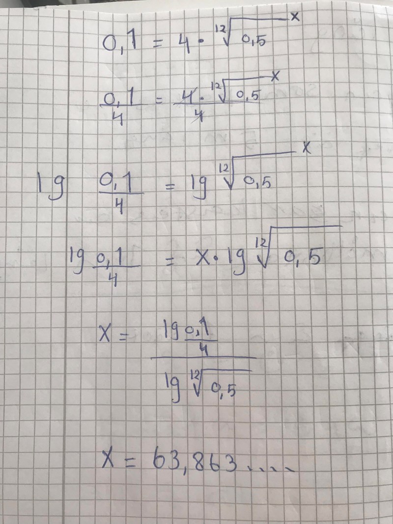 Så efter ca 63,8580 h återstår 0,1 mg ?