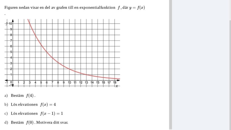 Figuren nedan visar en del av grafen till en exponentialfunktion f, där y=f(x)
