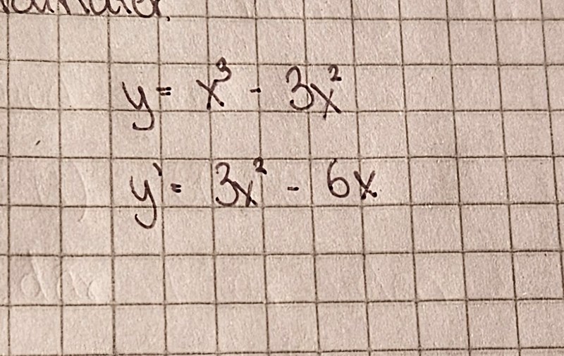 Janne491 skrev:uttrycket för derivatan = 0 är ju en andragradsekvation, men du har fått tre rötter. Det ska bli två rötter. Lättast är om du bryter ut x: y´ = x(3x - 6). Då ser du att en av rötterna är noll och en är 2. -2 är ingen lösning