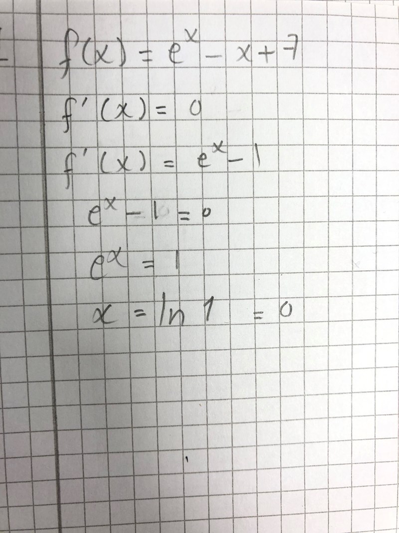 Undersök också derivatan i en punkt till höger om x = 0 och en till vänster om x = 0. Är derivatan positiv eller negativ i var och en av dessa punkter? Betyder det att din extrempunkt är ett maximum eller ett minimum? Om du föredrar det, kan du titta på andraderivatan istället.