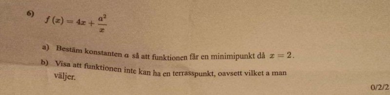 Jag provade att derivera funktionen, hur kommer jag vidare?