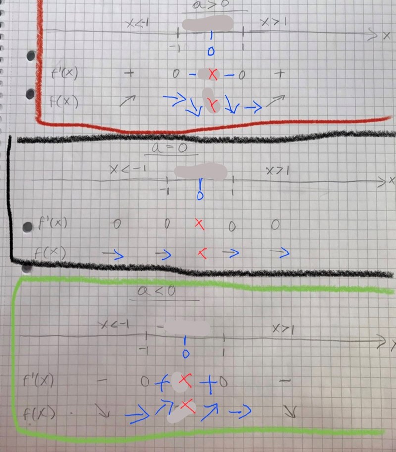 Har inte lärt mig om andraderivata än, eller teckenstudie än. Har bara lärt mig om teckenschema, men det kanske är exakt samma sak som teckenstudie? Om dom är samma, vet jag fortfarande inte hur jag ska lösa uppgiften.