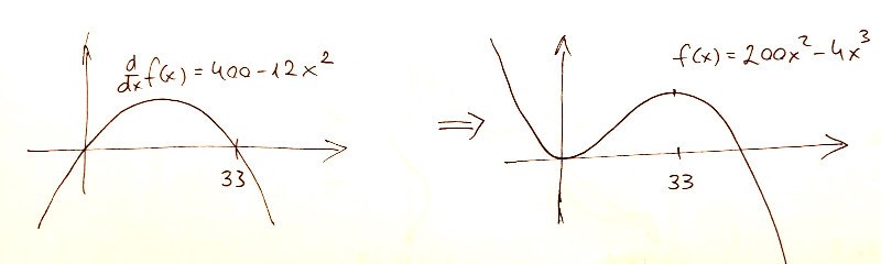 det blev tydligt att för alla x>0 är 33,3 absolut maximum. Vad än ändpunkterna är.