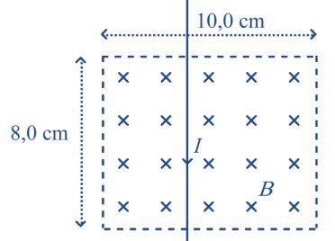 "En rak ledare befinner sig i ett homogent magnetfält med begränsad utsträckning enligt