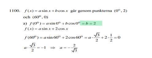 Eftersom att sin(0) ger värdet 0, då blir första termen i funktionen lika med 0: Nu kan vi med enkelhet se att b=2, därefter kommer du nog vidare.
