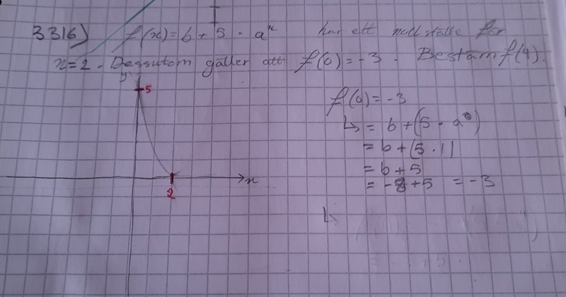 Funktionen kan då skrivas f(x) = -8+5•ax.