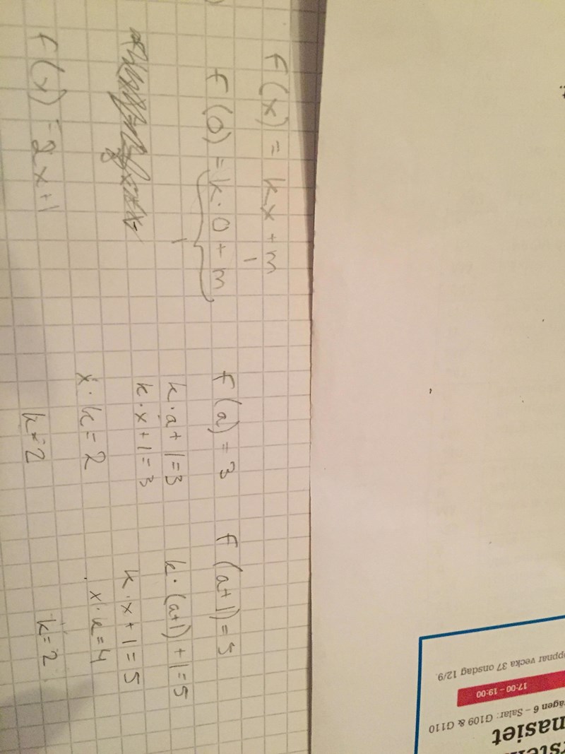 har försökt lösa denna uppgift men vet inte riktigt hur jag ska lösa den. Har löst a men inte b. Hur ska man göra när första är f(1)=5