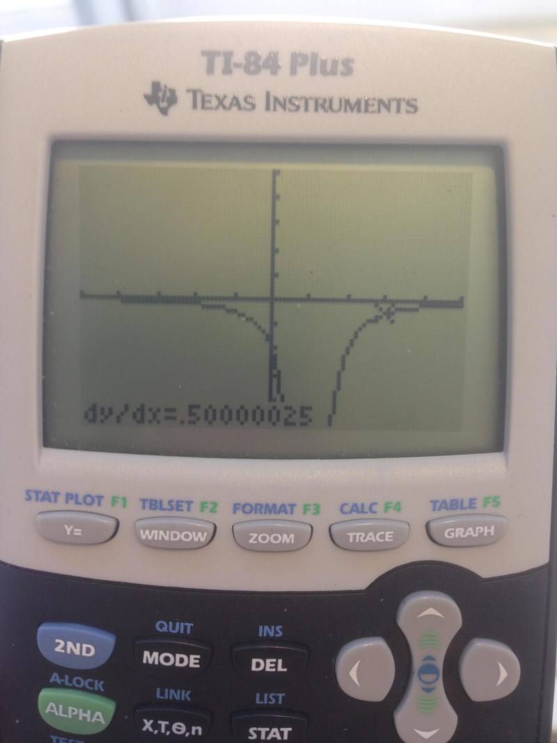 Vad du har gjort är att du har ritat upp derivatan på din miniräknare och sedan beräknat derivatans derivata, d.v.s. andraderivatan i punkten .