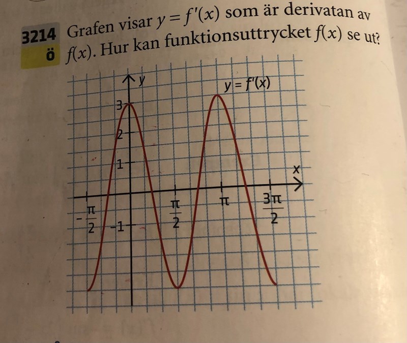 Hur ska jag lista ut f’(x) baserat på bilden? Hur vet jag om den är cosx eller sinx?