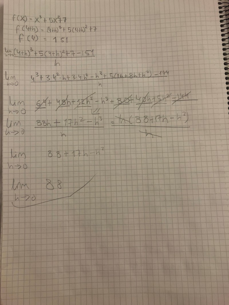 Om du använder derivatans definition och får samma svar så har du gjort rätt. Jag vet inte riktigt vad de vill att du ska göra, men kanske en ändringskvot när h inte har gått mot noll, t. ex. en sekant från x = 4 till x = 5.