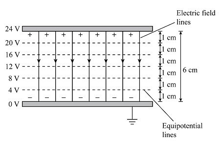 Så rita var potentialen är 1,2 volt när spänningen är 2,0 volt mellan plattorna i den här uppgiften.