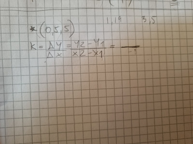 P1 = (0,5 ; 0 ) och P2 = (0 ; 5) Rita punkterna i ett nytt koordinatsystem och dra linjen!