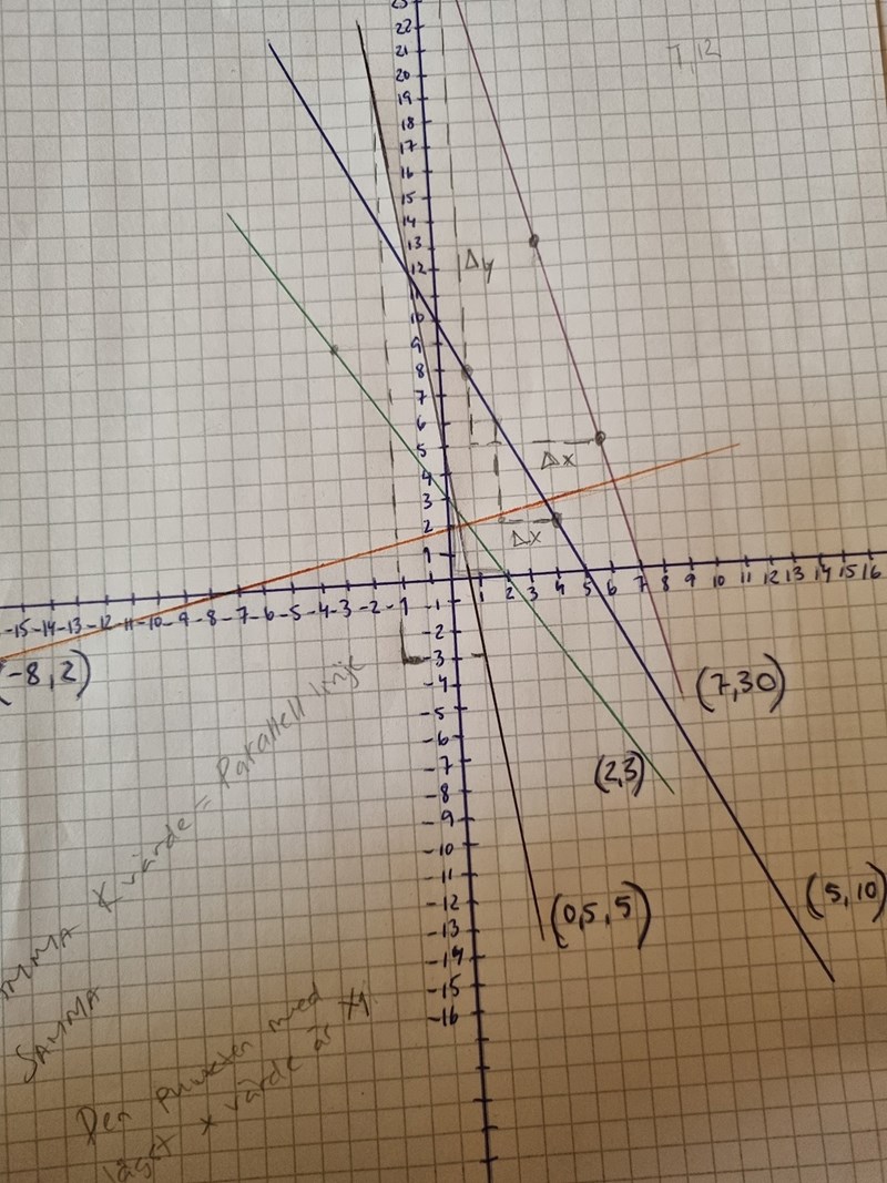 Linjen (0.5, 5) och linjen (-8,2).