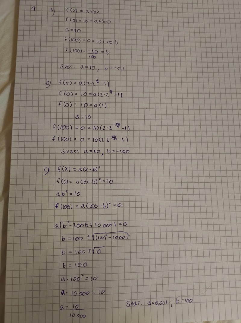 Kom fram till att a= 1/1000 och b= 100. Men vet inte om det är rätt?