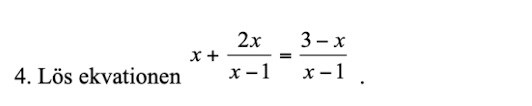 Första raden verkar vara en likhet där man har förlängt varje led med (x-1)