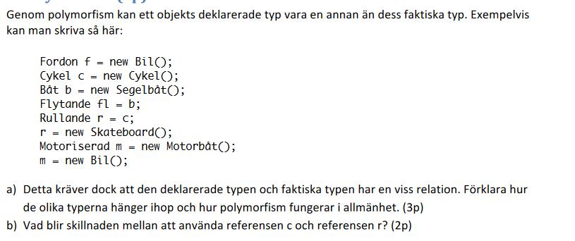 Ja, c kan bara referera till en instans av Cykel medans r är deklarared av basklasstyp Rullande och kan därför referera till instanser som ärver från Rullande som t.ex. Skateboard.
