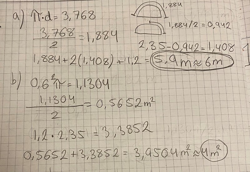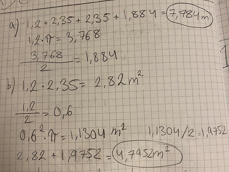 Nu börjar du komma närmre det rätta svaret, men såvida jag tolkar det rätt, tror jag måttet 2,35 är för en rak sträcka. Dvs om det skulle varit en rektangel med måtten 1,2x2,35. Detta är höjden på föremålet, inte någon typ av omkrets. Förstår du hur jag menar?