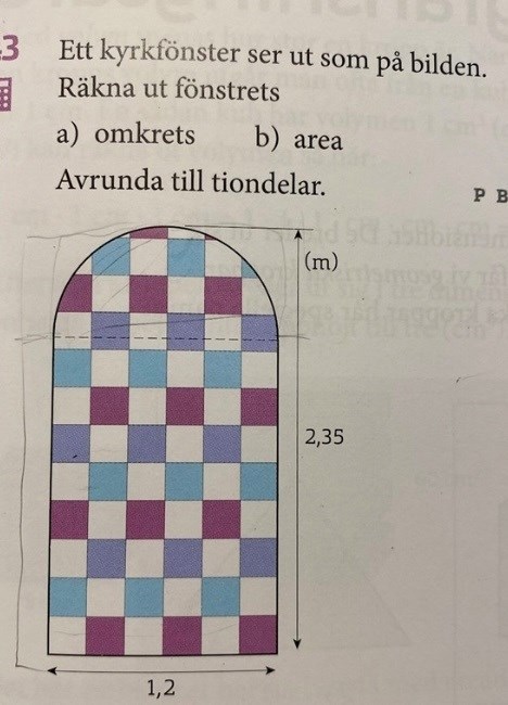 3,14ngvinen_(rebus..) skrev:Som jag tolkar det är det hela långsidan (inkl. ”Cirkel-delen”) som är 2,35 m. Dvs hela figurens höjd är 2,35 m. Förstår du hur jag tänker?