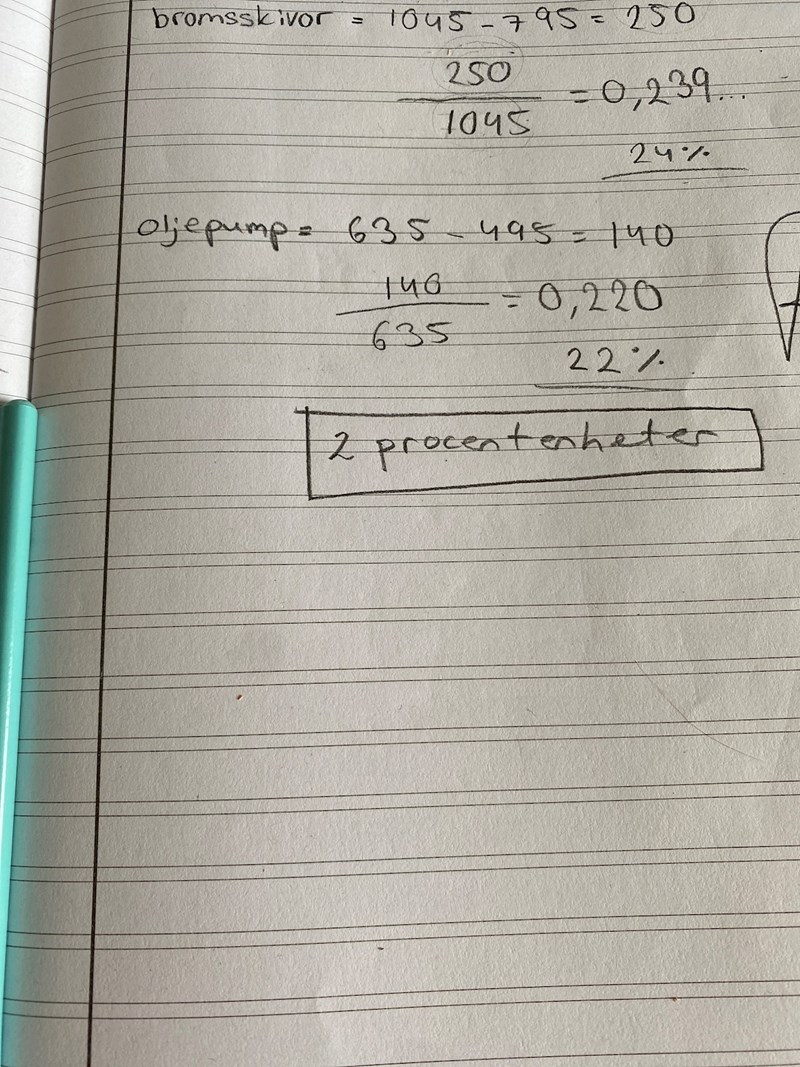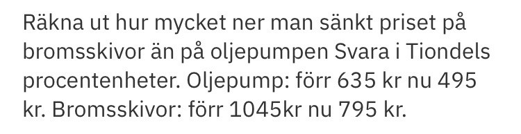Du skall svara t ex 3,6  %-enheter (påhittat värde).