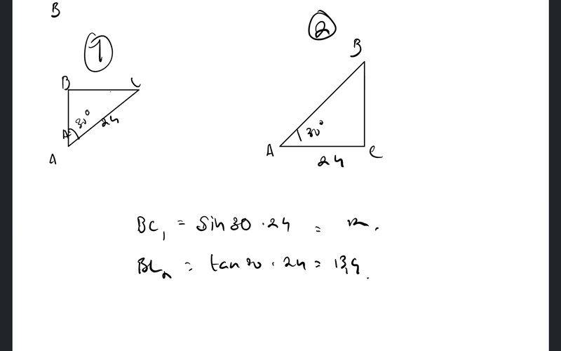 Borde inte denna uppgift ge möjligtheten till två olika trianglar. Den ena där hypothenusan blir 24 och den andra där en av kateterna blir 24. Detta borde ju då förändra resultatet för BC? har jag tänkt fel?