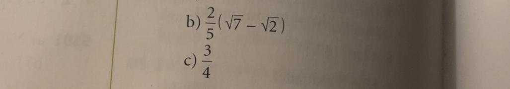 Jag provade att subtrahera roten ur 7 med roten av 2 och multiplicera med 2 för att sedan dela med 5 men även det blev fel.