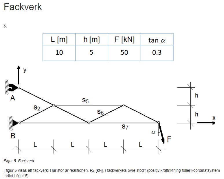 Okej tack så mycket! Då var felet att jag missade att ta kraften i x och y riktning när jag skulle räkna ut momentet. Jag vet inte varför men det känns mer naturligt för mig att ta momentet ifrån A men är det lättare att ta det från B så ska jag testa det med. Jag var lite osäker på om det var Ray eller Rax som söktes efter samt om Rax skulle ha pilen in mot väggen eller ut. Men tror jag förstår det nu, ska göra om uppgiften och se om det blir rätt.
