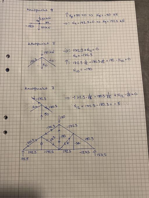 Jag ska beräkna stångkrafterna med knutpunktsmetoden och har gjort fel i knutpunkt 6 och lyckas inte få till rätt krafter