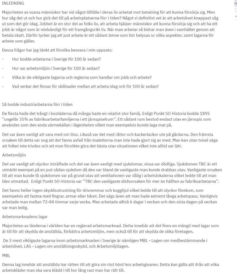 Du bör göra en sammanfattande konklusion om vad som är din främsta slutsats där du i en eller två meningar sammanfattar din text. Vad är den största och viktigaste skillnaden och förändringen av arbete på 100 år? Vad är likt?