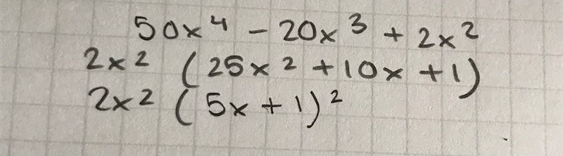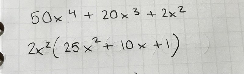 Ja. Nu kan du antingen känna igen en kvadreringsregel, eller så kan du dela parentesen med 25 och använda pq-formeln för att faktorisera parentesen.