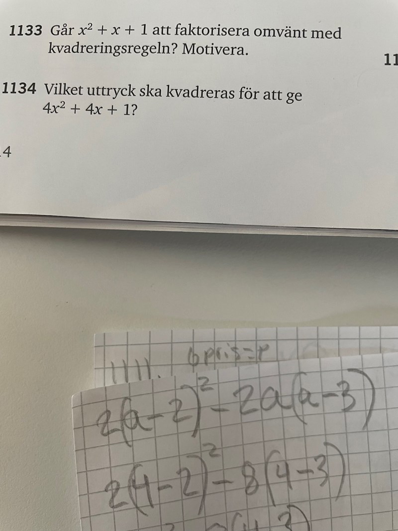 går att faktorisera, det stämmer, men hur är det med ? Går det att faktorisera med kvadreringsregeln? :)