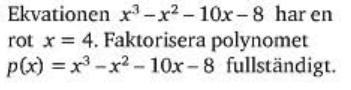 Jag vet att man ska divider amed x-4 då det är en rot, så jag får (x^2+3x+2)(x-4), men jag ska faktorisera den fullständigt, så hur kommer jag vidare?